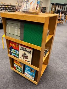 We began by carving out physical space in the library. After a much-needed weed, we made room for labeled bins filled with low-tech building materials: LEGO® bricks, K’NEX®, and KEVA planks. A rotating shelf let us pair building books with actual building materials – like LEGO – which led to a big uptick in those books being checked out. Win-win!